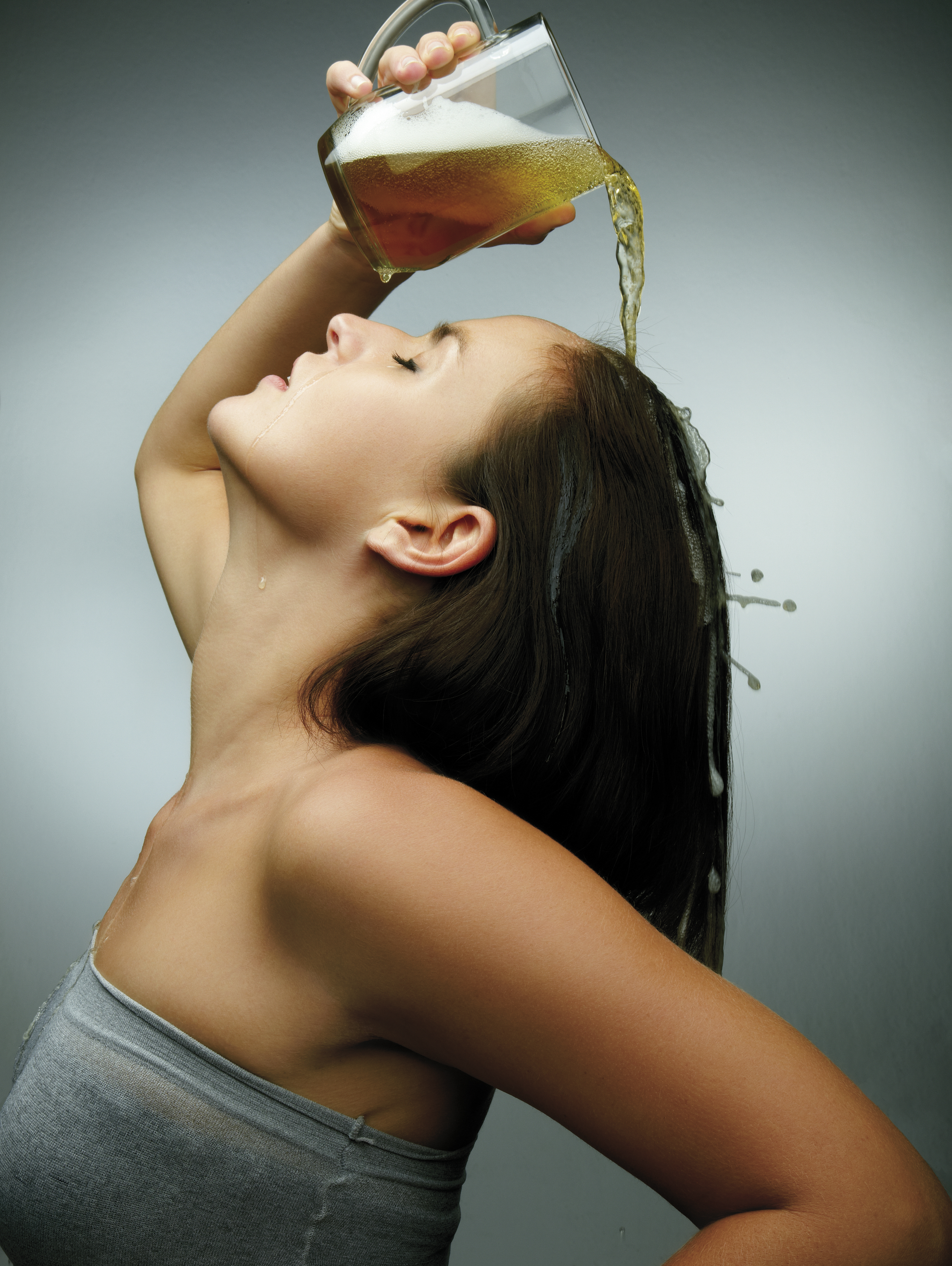 Rinsing hair with beer is an old wives tale that some still swear by today. After the liquid evaporates from the hair, a residue of hops and barley is left, giving hair more body and weight.