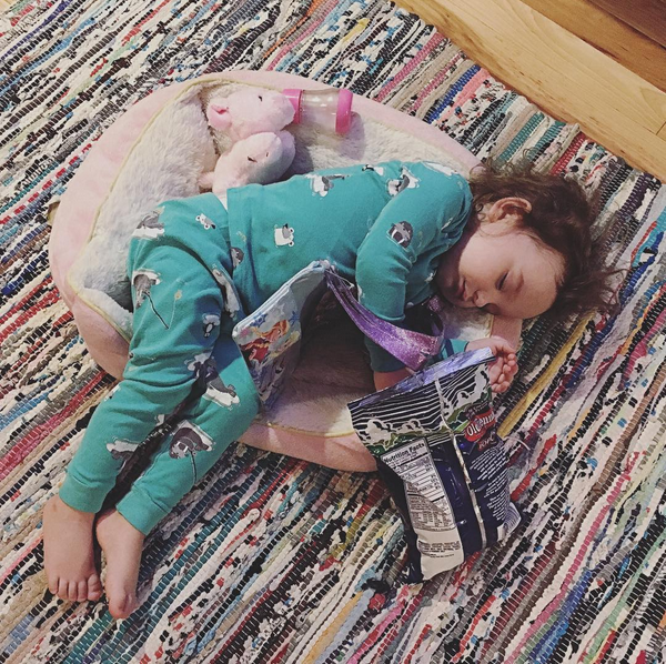 via Instagram Not even chicken fingers could keep this sleeping beauty from her rest.