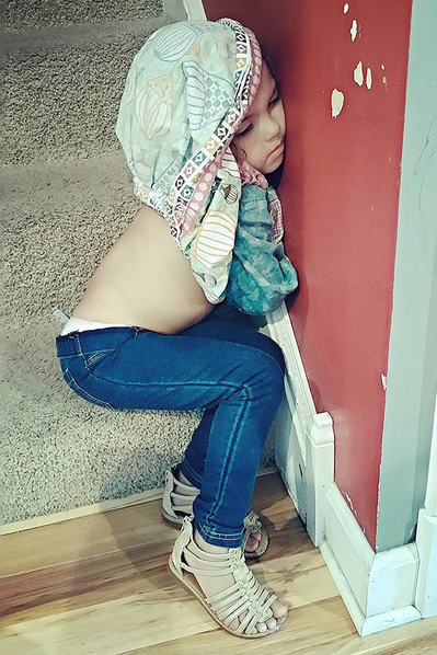 We're guessing this determined kid can will himself to sleep absolutely anywhere. via <a href="https://www.instagram.com/tattooedmomof3/" target="blank">Instagram