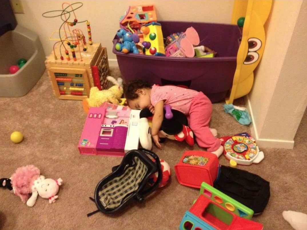 This nap spot is a true testament to just how tuckered out this poor kids is. If there's anything less comfortable than sleeping on the floor, it's got to be this. via <a href="https://imgur.com/gallery/vMQKiOz" target="blank">Imgur_